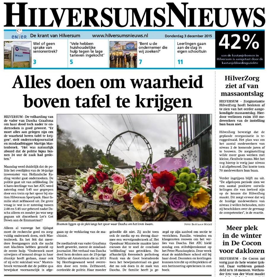 Vorige week werd ik voor de verandering zelf geïnterviewd. In de zaak van Dascha Graafsma voor het Hilversums Nieuws en voor een terugblik op de zaak Tarik Z., door de redactie van huis-aan-huisblad Delft op Zondag.