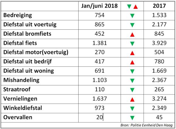 De redactie van het radioprogramma Dossier Mastenbroek op Den Haag FM heeft de eerste veiligheidscijfers van 2018 in kaart gebracht. Het zijn voorlopige gegevens op basis van aangiften bij de Politie Eenheid Den Haag van januari tot en met juni dit jaar. De informatie geeft een actueel beeld van criminaliteit, misdrijven en klein leed in Den Haag.