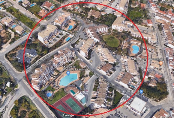 Ik sluit niet uit dat de man die verantwoordelijk is voor de vermissing van Madeleine ook een dergelijke technische achtergrond heeft. Mogelijk houdt hij haar verborgen in zijn eigen gebouwde kelder of andere (bouw)constructie. Hij hoeft niet per definitie een zedenverleden te hebben en rolt daarom ook niet uit de politiesystemen. De dader woont dus in Praia da Luz. Mogelijk zelfs in dezelfde straat! Maar in ieder geval met zichtpunten op het appartement (zie afbeelding onder). Dat kan niet anders. Hij heeft in de dagen vooraf precies kunnen zien met welke frequentie de ouders van Madeleine hun kinderen hebben gecheckt om vervolgens weer terug te gaan naar het tapasrestaurant. Deze observaties vonden niet plaats vanaf de openbare weg, maar vanuit een woning in de buurt! Op de openbare weg was dit zeker iemand opgevallen: het barst daar van de vakantievierders en mensen op straat. Op het moment dat de kust veilig was, is de dader via de zij-ingang naar binnengegaan en vervolgens weer via het slaapraam naar buitengegaan. Waarom hij niet via dezelfde route naar buiten is gegaan; komt omdat hij precies wist dat daar mogelijk een ouder naar binnen kon komen. Dat weet je alleen als je de boel langdurig in de gaten hebt gehouden… Juist: vanuit een woonhuis.