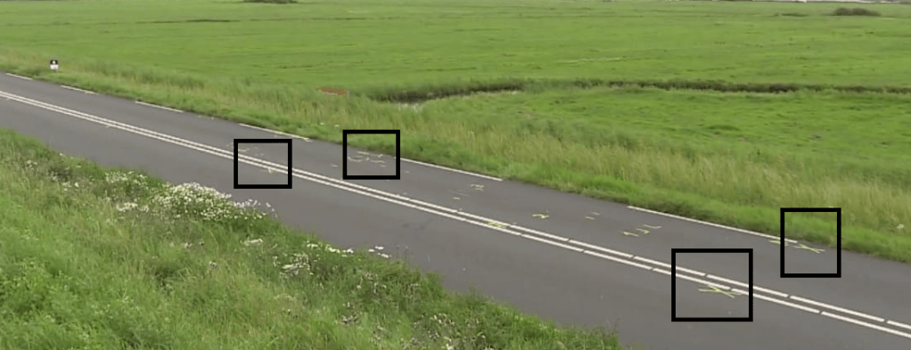 Over de kruizen zegt hij: “Er zijn vier kruizen. Zo kunnen ze de afstand meten met een overzichtsfoto.” Het gaat dus mogelijk om een flinke remweg.