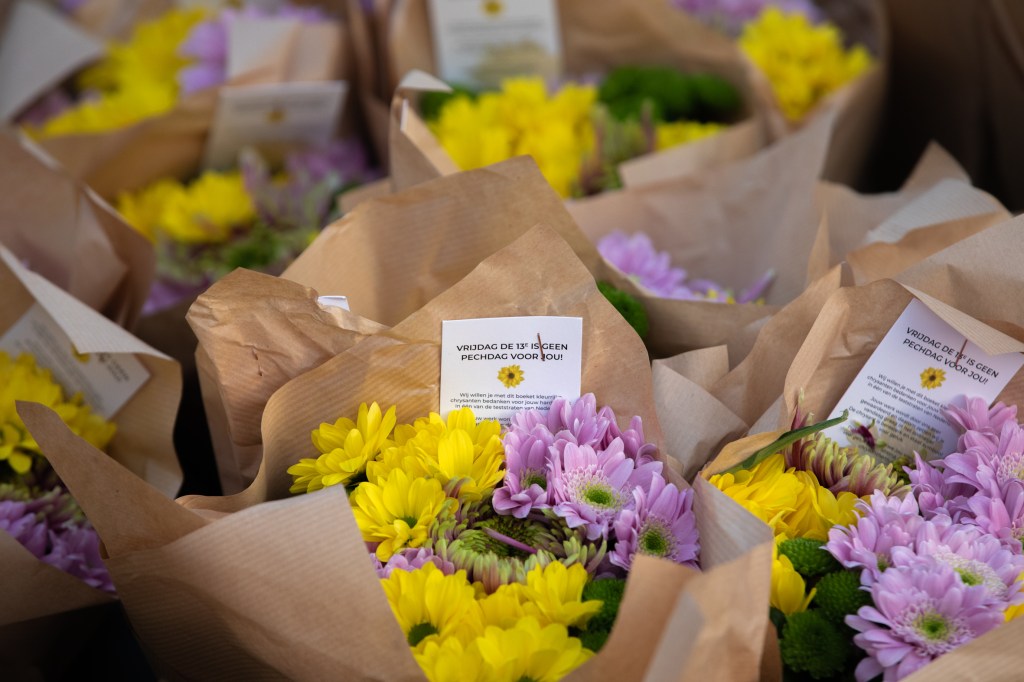 Vrijdag de dertiende blijkt geen pechdag voor GGD teststraatmedewerkers! GGD-medewerkers van de testlocaties in Nederland, ontvangen vandaag een kleurrijk boeket chrysanten.