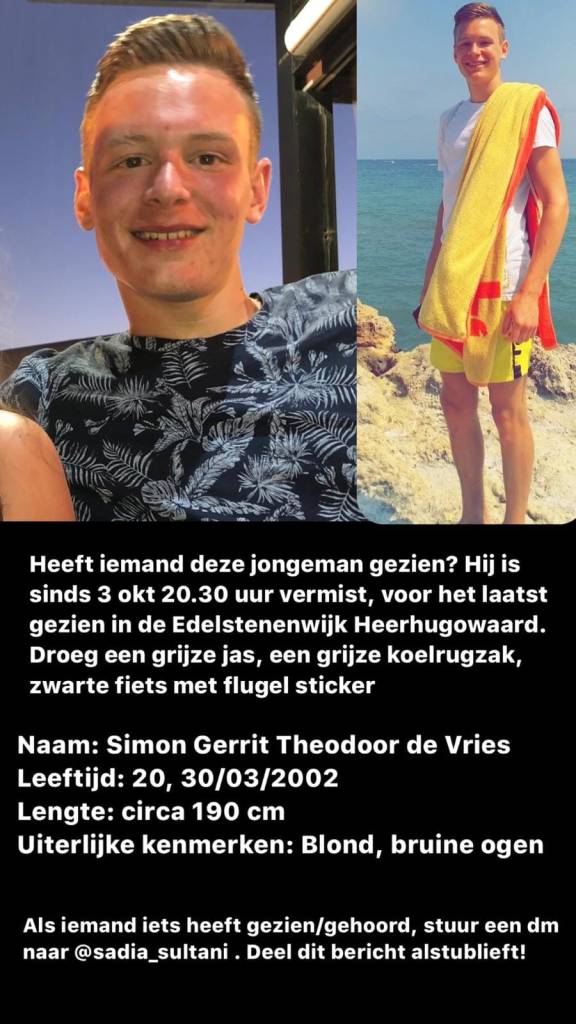 Sinds maandag 5 oktober 2020 wordt Simon de Vries uit Heerhugowaard vermist. Simon is 20 jaar oud. Al maanden is onduidelijk waar hij is.