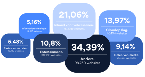 Uit onderzoek van NordVPN blijkt dat adult content sites (21%), cloud storage providers (14%) en entertainment sites (11%) de grootste hoeveelheid malware bevatten. In december blokkeerde Threat Protection respectievelijk 60.400, 40.100 en 30.900 domeinen uit deze categorieën.