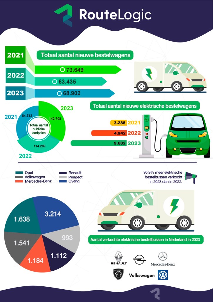 In november 2023 werden de nieuwe cijfers gepubliceerd en hieruit blijkt dat Nederland op dat moment over 142.708 publieke laadpalen beschikt. Hiermee heeft Nederland de grootste laaddichtheid van Europa. Uit een vorig onderzoek van RouteLogic bleek dat de laadinfrastructuur één van de voornaamste redenen was om nog niet voor een elektrische bestelwagen te kiezen, naast de aanschafkosten en de beperkte actieradius.
