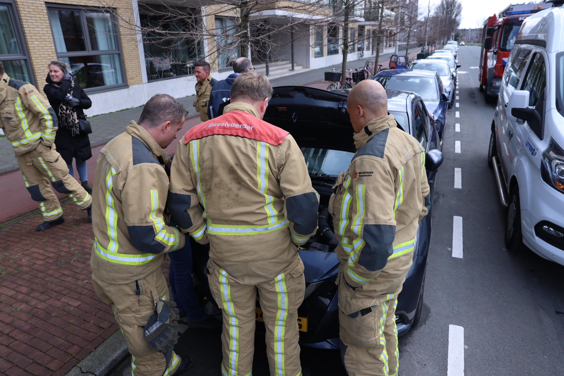 Op een rustige zondagmiddag op 25 februari was het allesbehalve rustig. Zowel de brandweer als de ambulancechauffeurs van Dierenhospitaal en Ambulancedienst ‘s-Gravenhage e.o. waren druk bezig met het bevrijden van een kat die vastzat onder de motorkap van een auto.