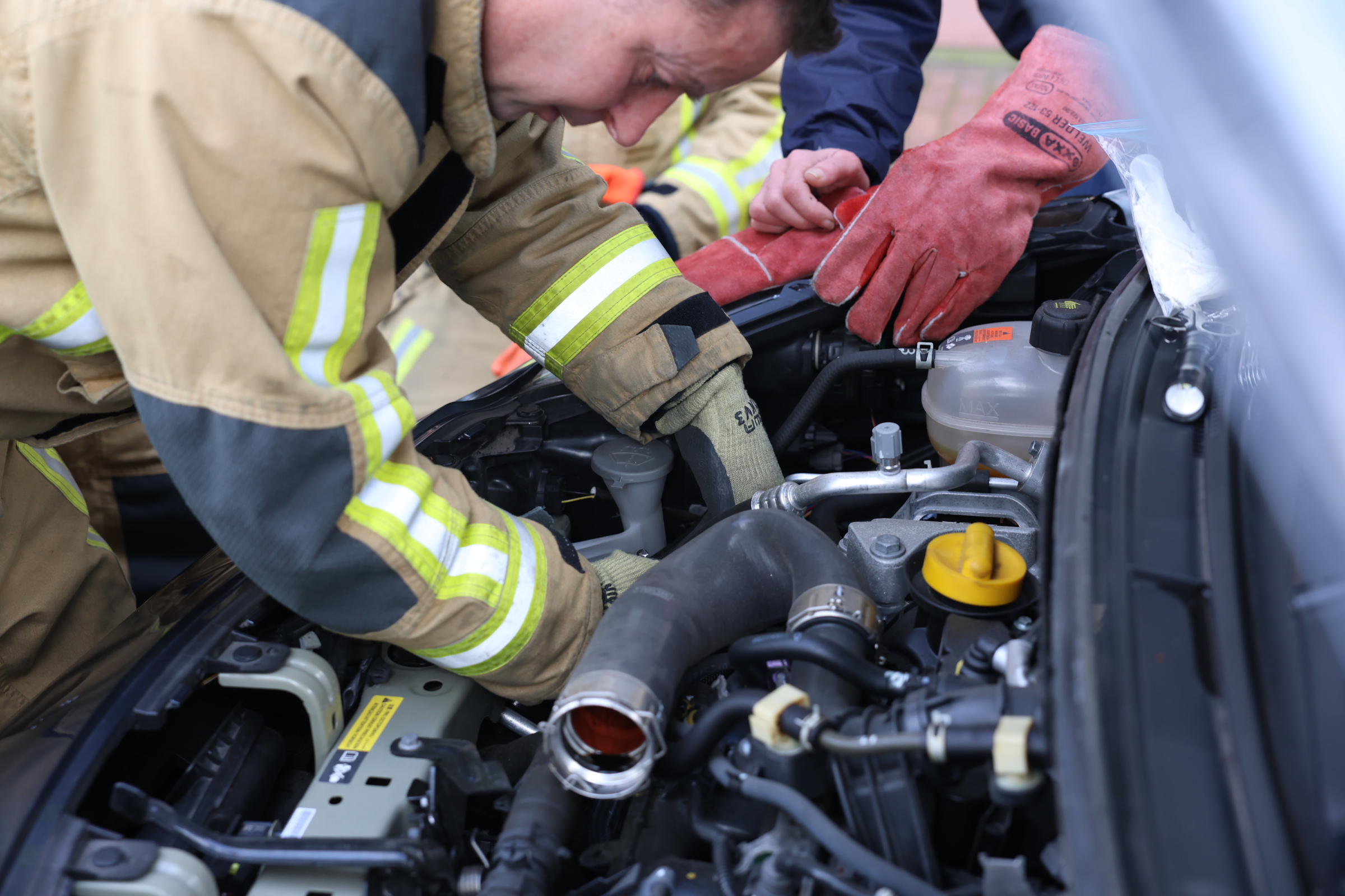 Natuurlijk gaven beide teams niet op. De brandweer probeerde via de onderkant van de auto toegang te krijgen tot de kat. En ja hoor, dat lukte! Maar nee, de kat rende meteen weg!