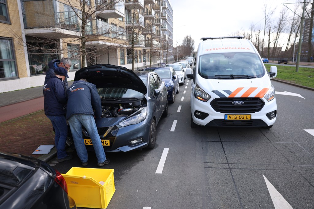 Dit incident vond plaats op de Conradkade, vlakbij de President Kennedylaan. De meldkamer van Dierenambulance Den Haag ontving een oproep over een kat die vastzat onder een motorkap. Ambulancechauffeurs Martin en Monique reageerden onmiddellijk en gingen aan de slag. Ondanks hun inspanningen slaagden ze er niet in om de kat te bevrijden.