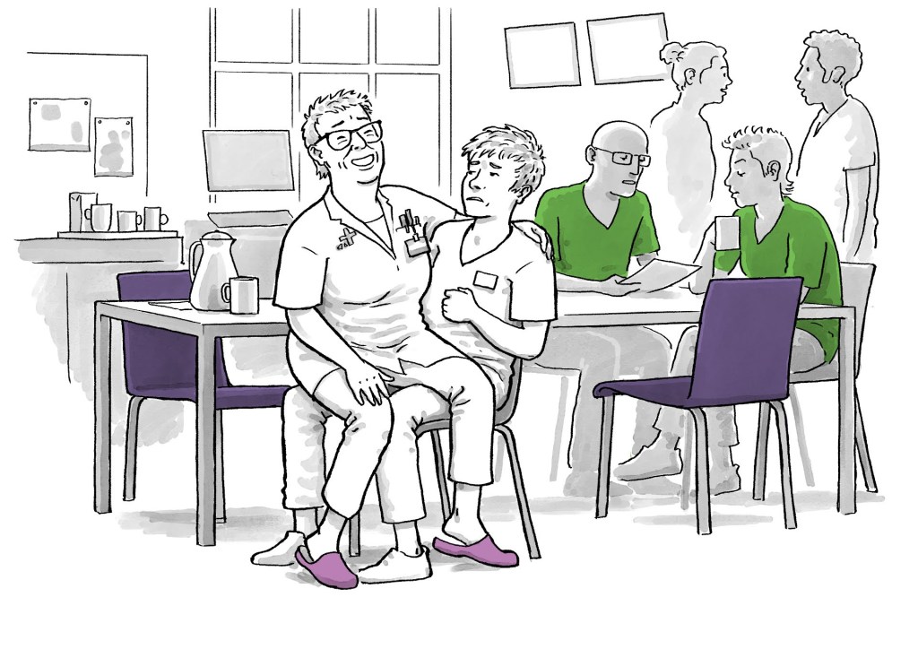 De toolkit bevat tips en adviezen over het omgaan met seksueel grensoverschrijdend gedrag tussen collega’s in de zorg. Ook vind je er een draaiboek in dat je voor een bespreking tijdens intervisie of teamoverleg kunt gebruiken. In zo’n bespreking kan je gebruik maken van de tekeningen, waarin situaties uit de praktijk zijn uitgewerkt. Je gaat dan samen aan de hand van het referentiekader in gesprek. Vinden beide personen het prettig? Is er sprake van druk of dwang? Zijn de personen gelijkwaardig aan elkaar?