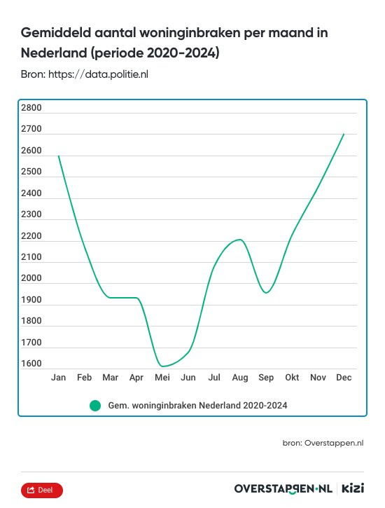 De vakantieperiode is begonnen en Nederlanders trekken er weer op uit naar hun favoriete vakantiebestemming. Uit data van de Politie blijkt echter dat de vakantieperiode ook een piek in woninginbraken ziet. Overstappen.nl deed onderzoek naar de angst voor inbraak tijdens de vakantie. Hieruit blijkt dat 69% van de Nederlanders niet bang is voor een inbraak tijdens hun vakantie. Toch neemt 85% van de ondervraagden wel preventieve maatregelen