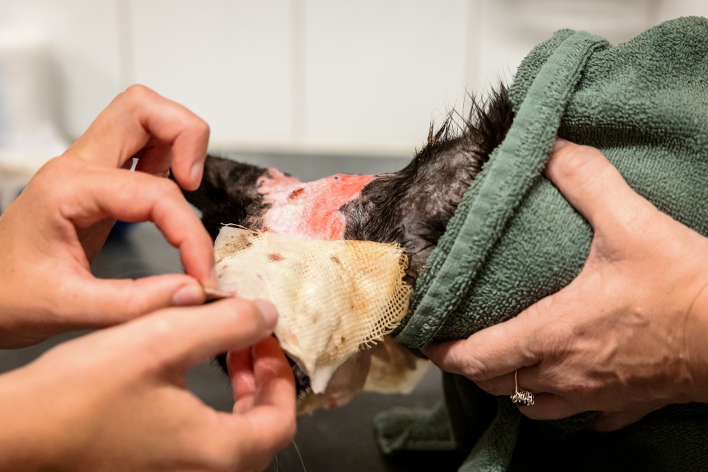 De dienstdoende dierenarts verwijderde het nare bandje en maakte de wonden schoon. Hechten was geen optie, maar Axila bleek gelukkig zijn eetlust niet verloren te hebben. Hij wordt nu vertroeteld in het hospitaal en zijn wonden worden dagelijks verzorgd. Het is mogelijk dat hij zijn voorpoot moet missen vanwege de ernst van de wond onder zijn oksel, maar voorlopig moet hij eerst aansterken.