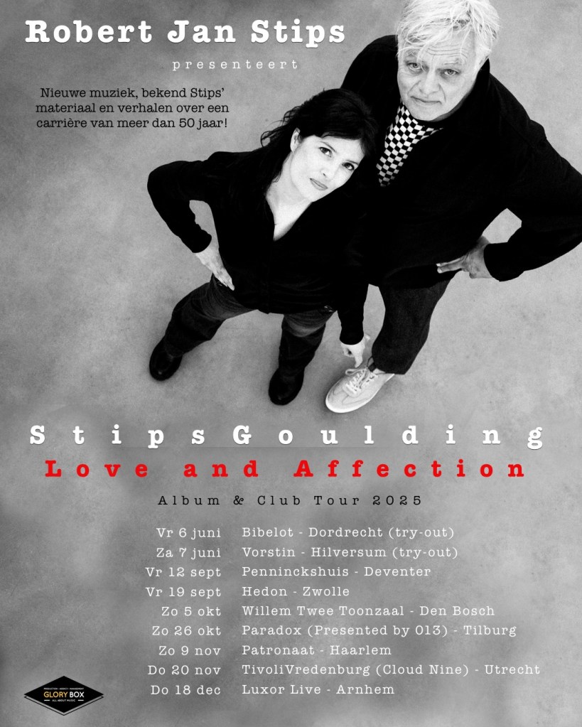 Wie dacht dat Nederpop-legende Robert Jan Stips inmiddels klaar was met verrassende projecten, heeft het mis. Na decennia aan invloedrijke muziek met onder andere Nits, Supersister, Sweet d’Buster, Transister, Freek de Jonge en Golden Earring, staat hij opnieuw op het podium met een gloednieuw project: StipsGoulding. Samen met zangeres Jane Goulding (o.a. Plan Nine en Livin’ Blues) kondigt hij vandaag -op Valentijnsdag- de clubtour ‘Love and Affection’ aan, vernoemd naar hun eerste album dat half juni verschijnt.