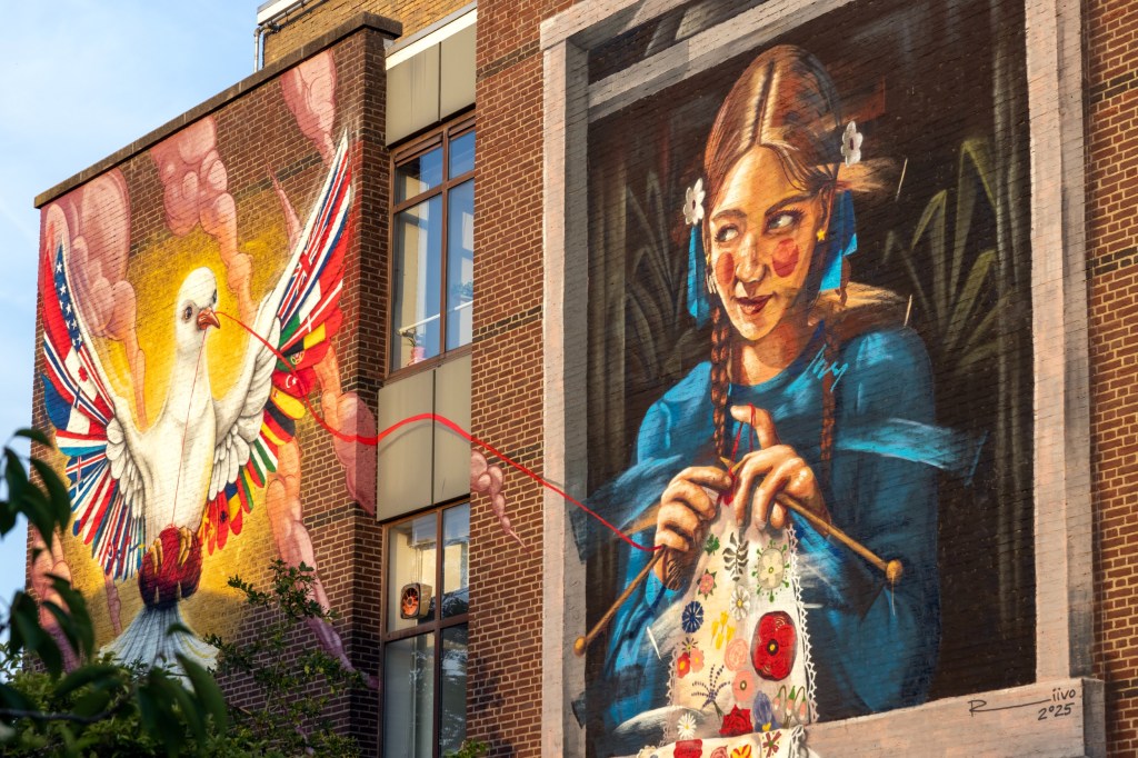In aanloop naar de NAVO-top van deze week hebben het ministerie van Buitenlandse Zaken, de gemeente Den Haag en de NAVO jonge kunstenaars uitgedaagd. Hun vraag was de missie van het bondgenootschap – het beschermen van een miljard mensen – in beeld te vangen. Onder het motto ‘Maintaining our Shared Future’ dienden jonge, ambitieuze makers uit binnen- en buitenland daarna hun ontwerpen in voor een muurschildering.