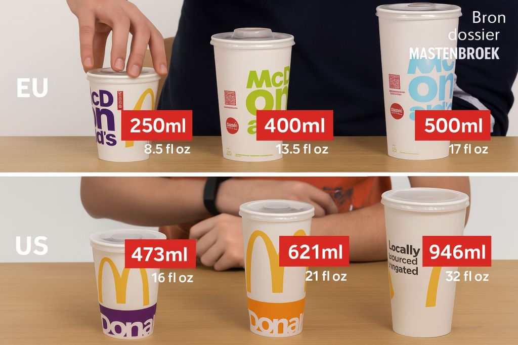 Hoewel Europa in veel opzichten nog “beschaafder” omgaat met fastfood, sijpelen Amerikaanse trends langzaam binnen. XXL-menu’s, suikerbommen en ‘unlimited refills’ zijn ook hier geen onbekende meer. Het is dus zaak om bewust te blijven van wat er in ons bekertje zit — hoe onschuldig het ook lijkt.