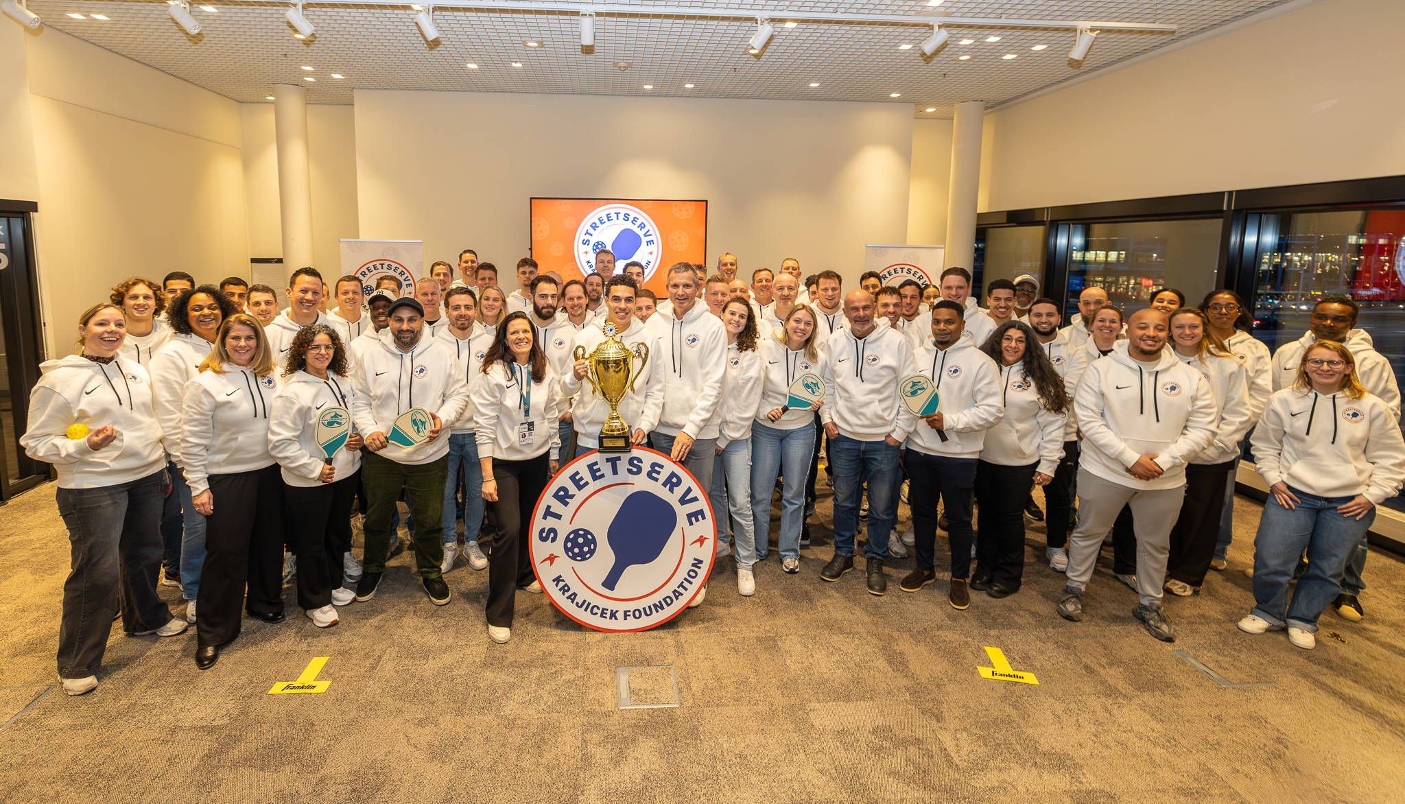De kick-off van StreetServe vond vanmiddag plaats in Rotterdam Ahoy, onder grote belangstelling van buurtsportcoaches uit het hele land. Richard Krajicek, oprichter van de Krajicek Foundation en StreetServe-ambassadeur en Nederlands kampioen pickleball Noah Washington zorgden voor een sportieve opening, waarmee het officiële startsein werd gegeven voor de landelijke uitrol van StreetServe.