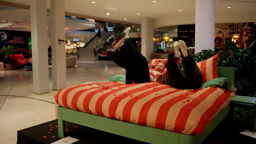 In het atrium van Woonmall Alexandrium werd een speciaal ingerichte slaapsetting gecreëerd, waar wonen en beleven samenkwamen. Tussen zorgvuldig gestylde interieurs en complete slaapkameropstellingen ervaarden de koppels hoe het is om letterlijk te overnachten op een plek waar normaal inspiratie wordt opgedaan.